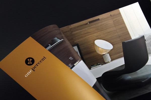 Several meetings and creative sessions went into the creation of the onepercent brand. The notion that the up-market furniture store was intended to suit a collector's tastes and a discerning affluent clientele, the cheeky 'onepercent' (the percentage of the population this description would apply to) was coined. The brand adopted a distinctive style and class throughout the rest of the branding.